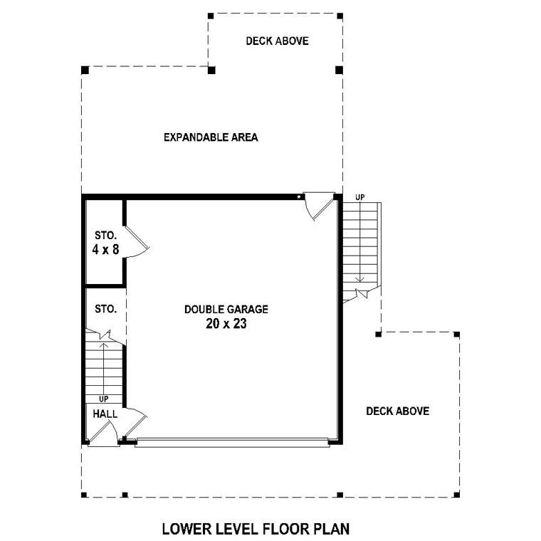 Traditional Style House Plan 44924 with 909 Sq Ft, 2 Bed, 1 Bath, 2 Car Garage