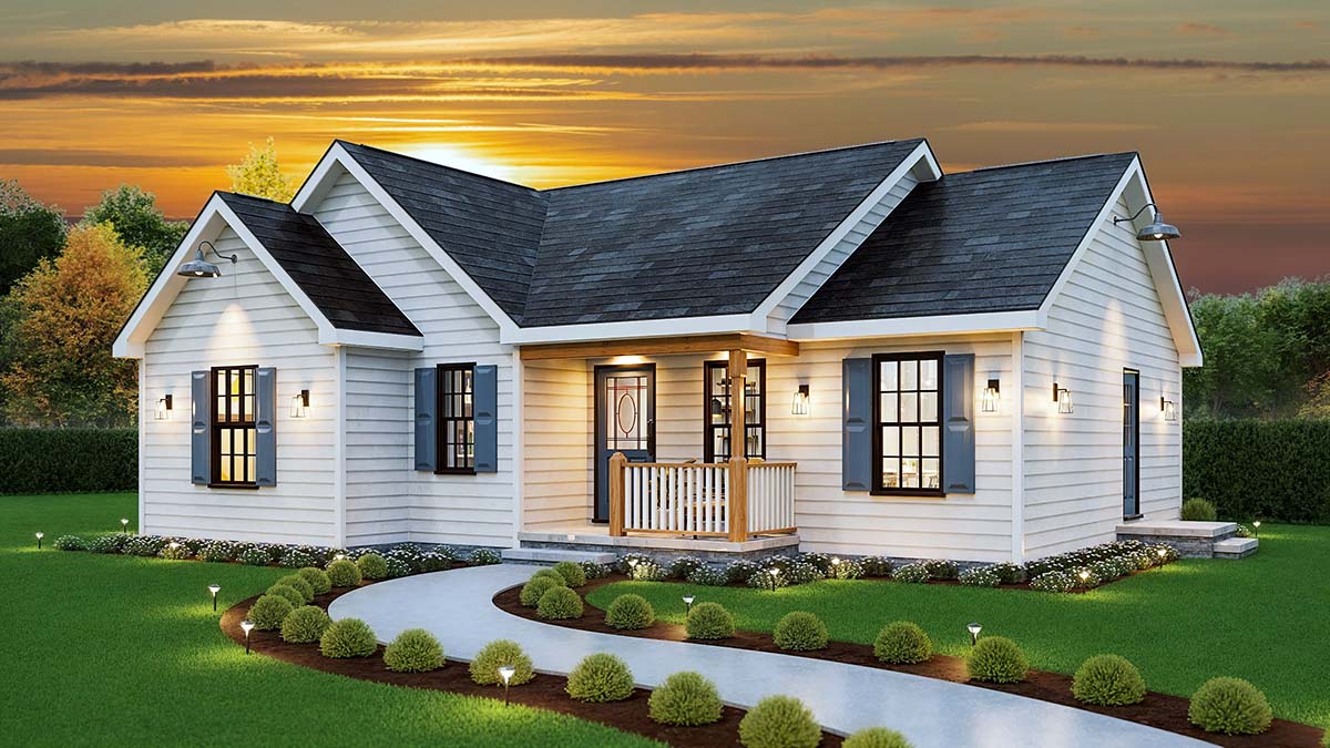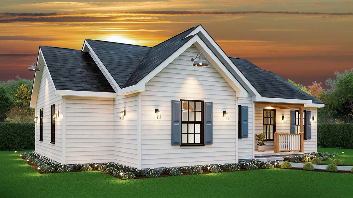 Contemporary, Craftsman, Farmhouse, One-Story, Traditional Style House Plan 45299 with 1183 Sq Ft, 3 Bed, 2 Bath