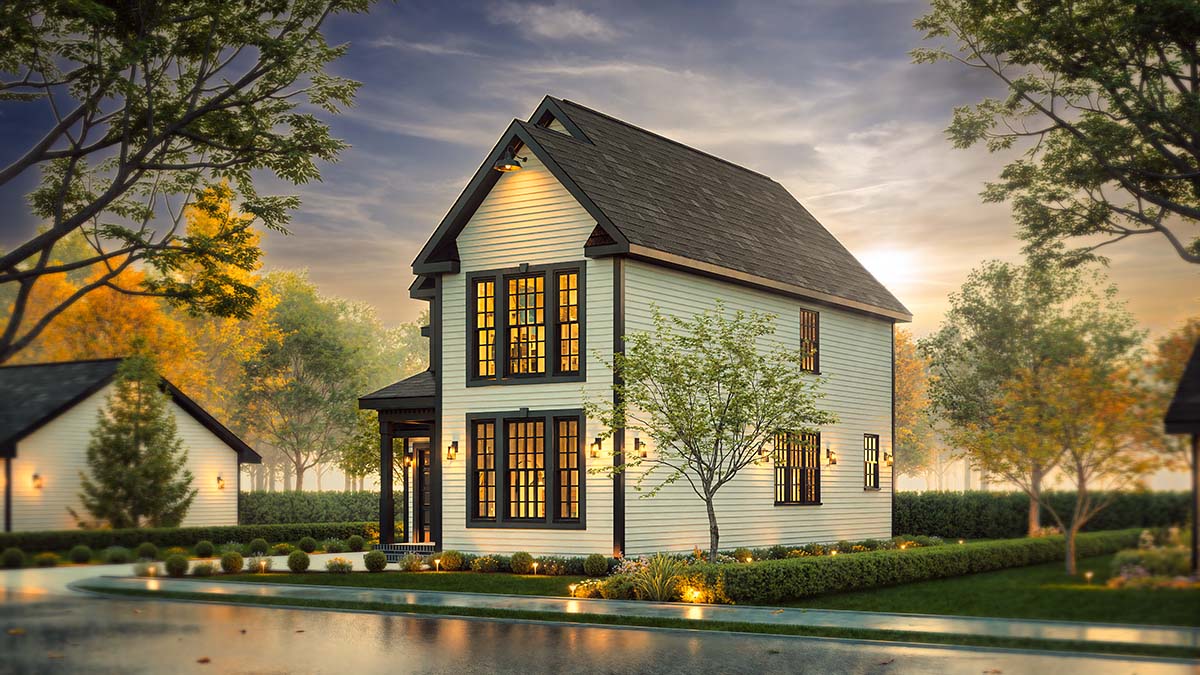 Craftsman, Narrow Lot, Traditional Style House Plan 45338 with 1666 Sq Ft, 3 Bed, 3 Bath, 1 Car Garage