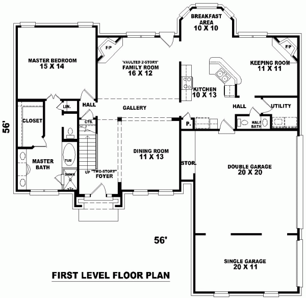 House Plan 46554 with 2314 Sq Ft, 4 Bed, 3 Bath, 3 Car Garage