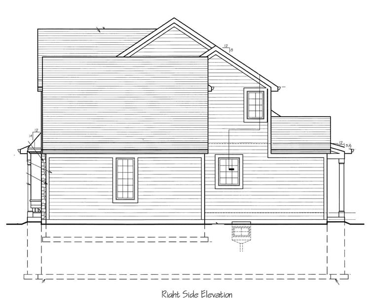 Foundation Plan: 1/4" scale foundation plan includes dimensions, actual steel beam and joist sizes. Most plans are designed for basement with a 7'10" pour and level lot (8" poured concrete wall).