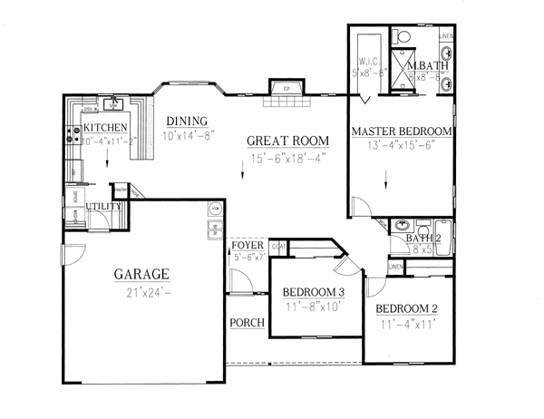 Country Style House Plan 50200 with 1412 Sq Ft, 3 Bed, 2 Bath, 2 Car Garage