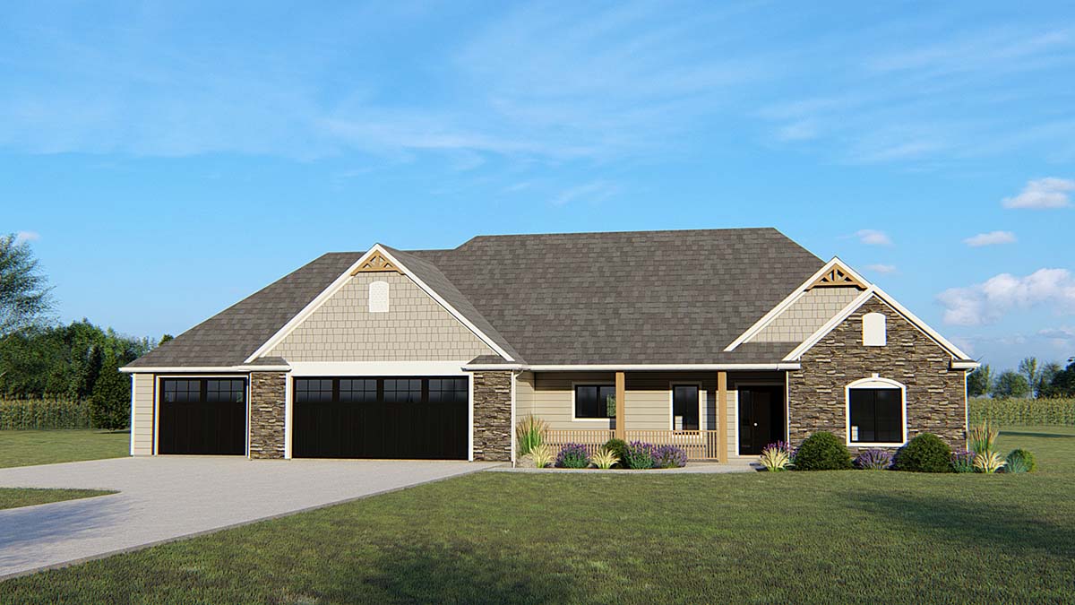 Plan 50676 | Craftsman, Ranch, Traditional House with 3 Bed, 2 Bath, 3 Car