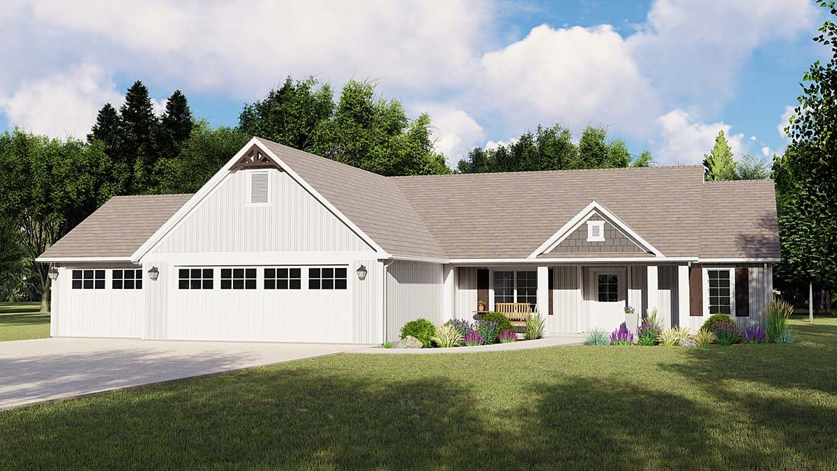 Plan 50698 | Ranch, Traditional House with 3 Bed, 2 Bath, 3 Car