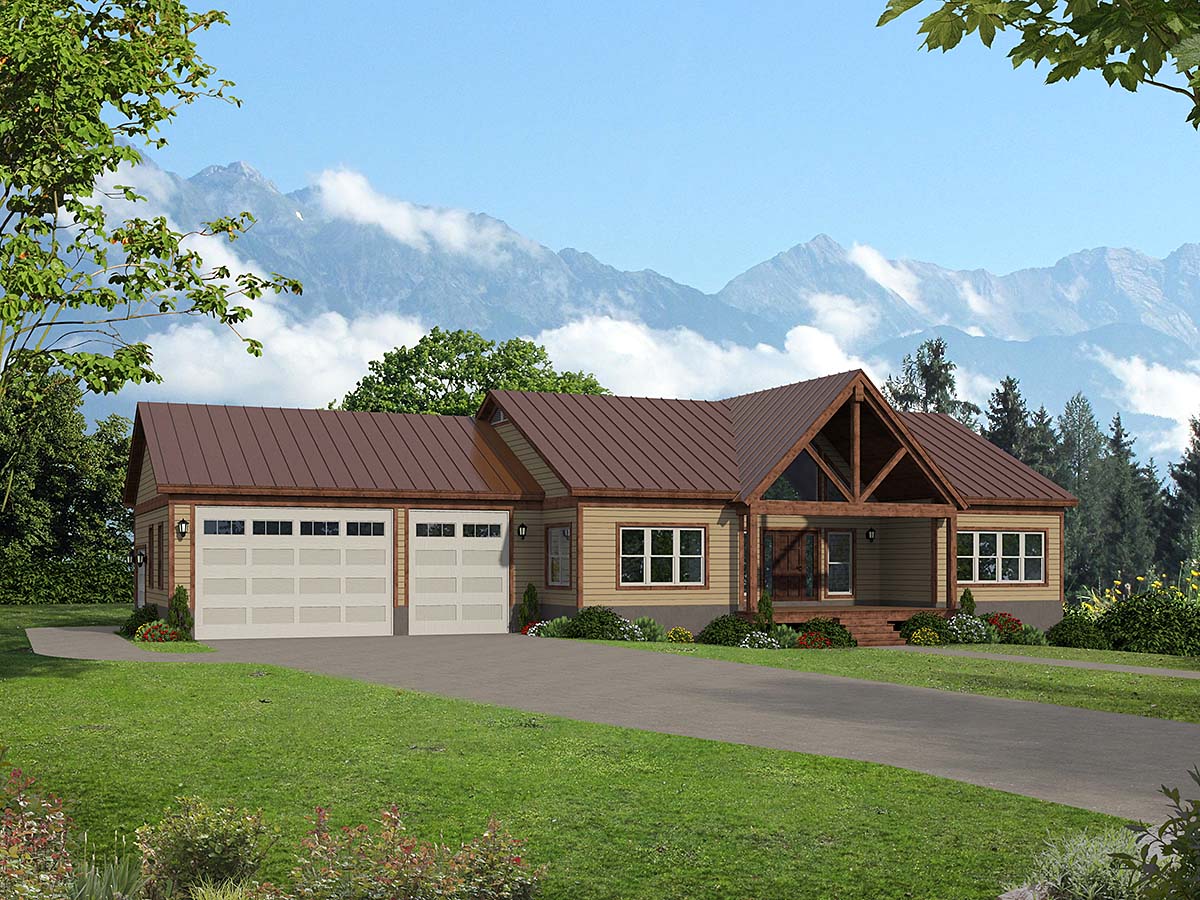 Country, Farmhouse, Ranch, Traditional Style House Plan 52166 with 1763 Sq Ft, 2 Bed, 2 Bath, 4 Car Garage