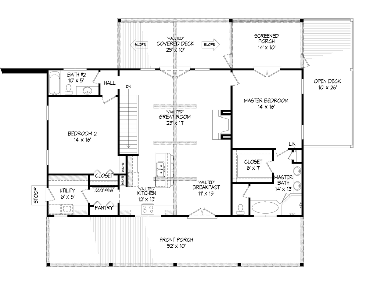 With its thoughtfully integrated features and relaxed ranch style, this plan delivers comfort, practicality, and classic curb appeal.