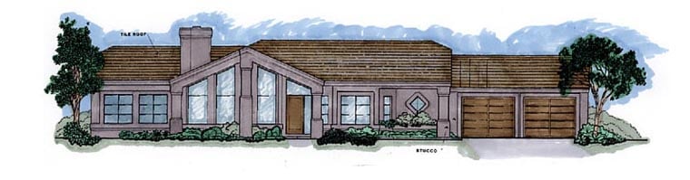 Southwest Style, 1969 Sq Ft, 3 Bed, 2 Bath, 2 Car | Plan 54679