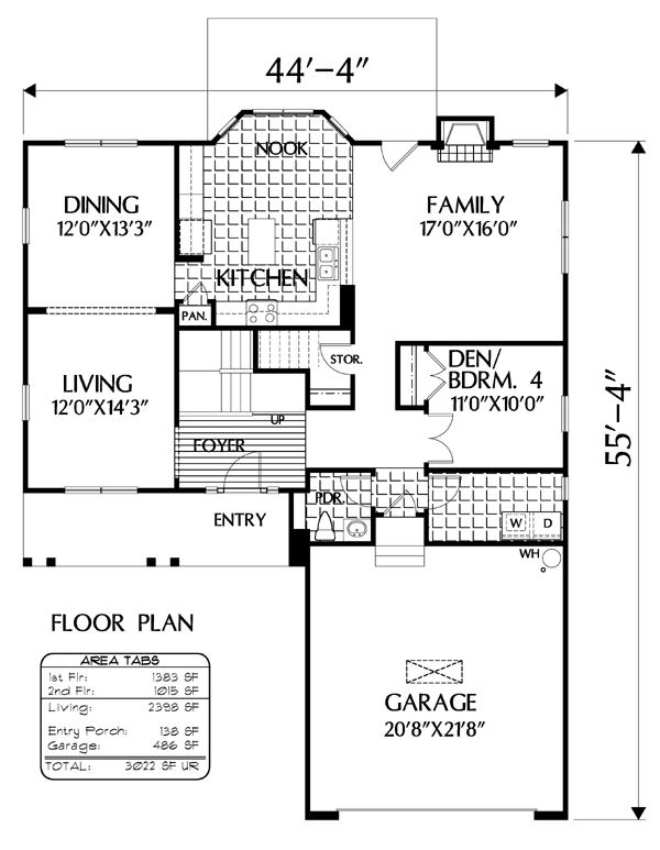 House Plan 54864 with 2398 Sq Ft, 3 Bed, 2.5 Bath, 2 Car Garage