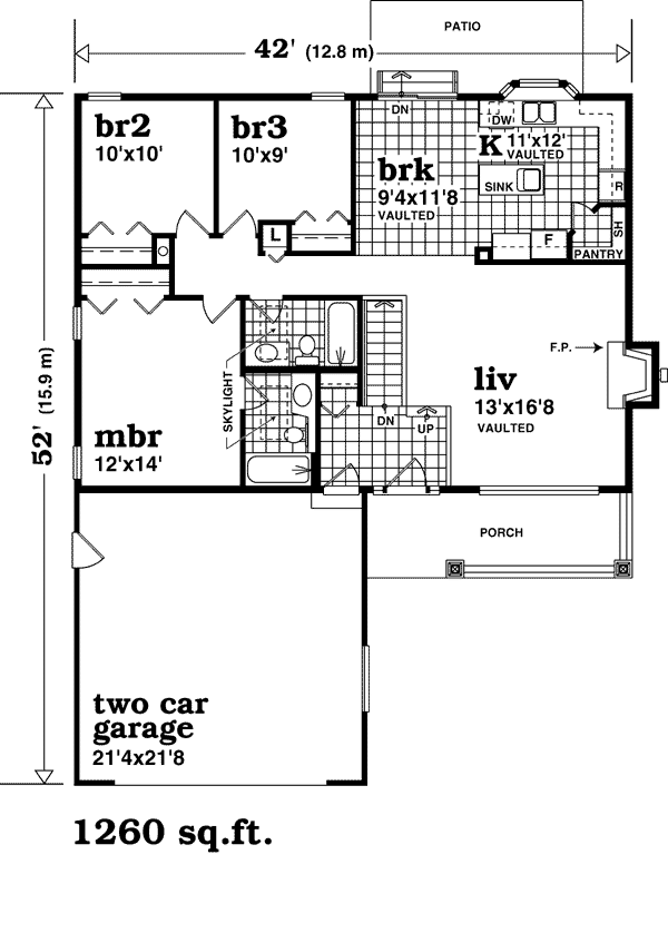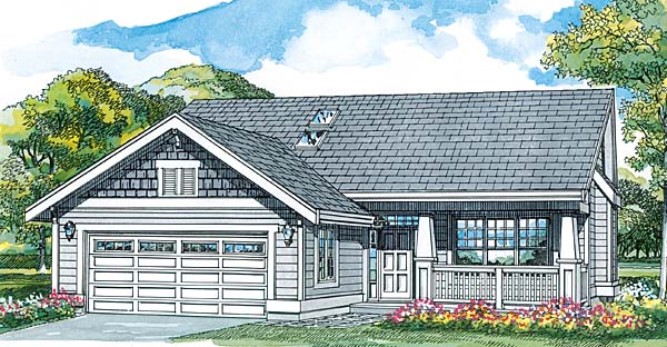 Craftsman, Narrow Lot, One-Story Style House Plan 55025 with 1260 Sq Ft, 3 Bed, 2 Bath, 2 Car Garage