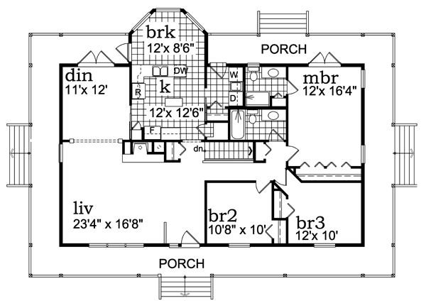 Country Style, 1601 Sq Ft, 3 Bed, 2 Bath | Plan 55400