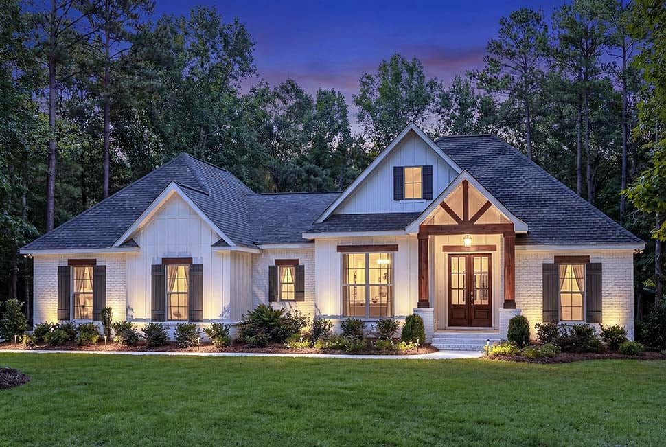 This plan is a beautiful mix of design and functionality which provides the most efficient use of space possible in a 1769 square foot home. This plan offers large rooms, raised ceilings, open floor plan, multiple storage areas and much more while still being economical to build. The attractive traditional exterior has styling that will be timeless and provide an elegant look for any neighborhood.