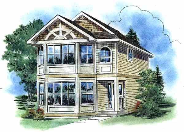 Narrow Lot Style House Plan 58530 with 1121 Sq Ft, 3 Bed, 3 Bath