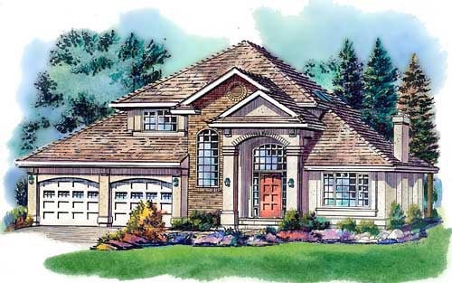 European Style House Plan 58761 with 1869 Sq Ft, 3 Bed, 3 Bath, 2 Car Garage