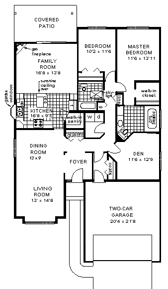 Contemporary, Narrow Lot, One-Story Style House Plan 58856 with 1766 Sq Ft, 3 Bed, 2 Bath, 2 Car Garage