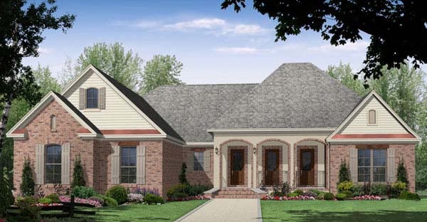 Attractive European country home designed for your families' needs. The oversized great room with raised ceilings and built in cabinets is just right for entertaining. Brick arches frame the spacious kitchen and dining. The kitchen, dining, and great room are arranged with an informal, open feel in mind. There is a large island with vegetable sink in the kitchen. The dining room has a raised ceiling with a great view. Bedrooms 2 and 3 each have a computer desk and private access to a shared bath. The office is conveniently located near the master bedroom and could serve as a guest bedroom or nursery. The flex space could be a hobby center, second office, laundry center or additional storage. The master bedroom has a vaulted ceiling along with his and her walk in closets and dual lavatories There is also an additional vanity for her. The garage is sized to accommodate two full size vehicles. The vaulted screen porch is designed to allow a breeze to blow through with no obstructions on either side. Careful attention to detail make this the right home for your family.