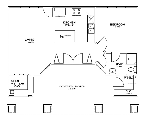 Cottage, Craftsman Style House Plan 59351 with 681 Sq Ft, 1 Bed, 1 Bath