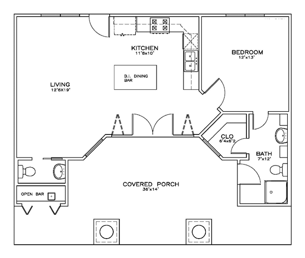 Cottage, Craftsman Style House Plan 59356 with 704 Sq Ft, 1 Bed, 2 Bath
