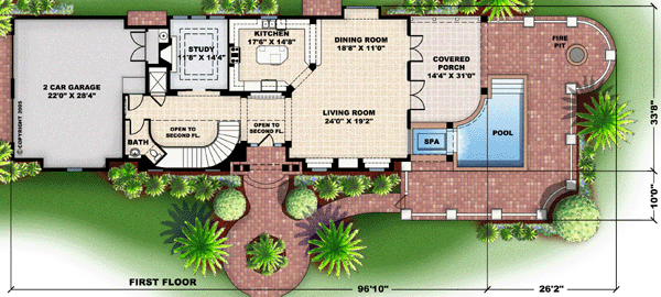 Southern Style House Plan 60549 with 4143 Sq Ft, 3 Bed, 4 Bath, 2 Car Garage