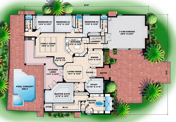 Mediterranean Style House Plan 60712 with 3448 Sq Ft, 4 Bed, 4 Bath, 2 Car Garage
