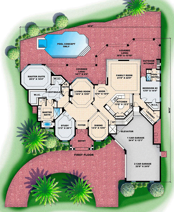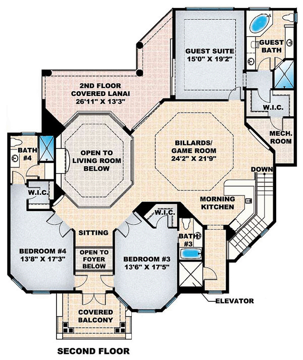 Mediterranean Style House Plan 60744 with 5905 Sq Ft, 5 Bed, 6 Bath, 3 Car Garage