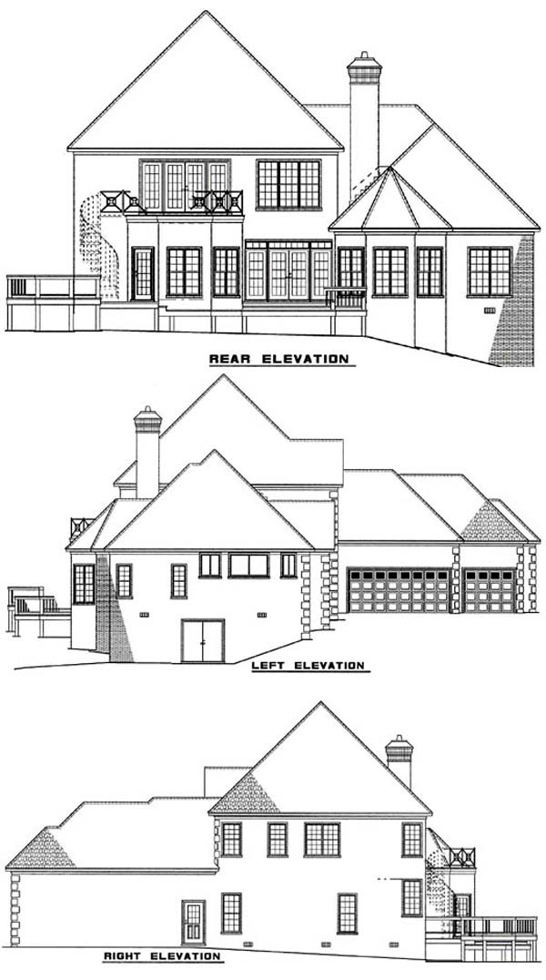 SET OF ELEVATIONS All plans include the exterior elevations (front, rear, right and left) that show and describe the finished materials of the house.