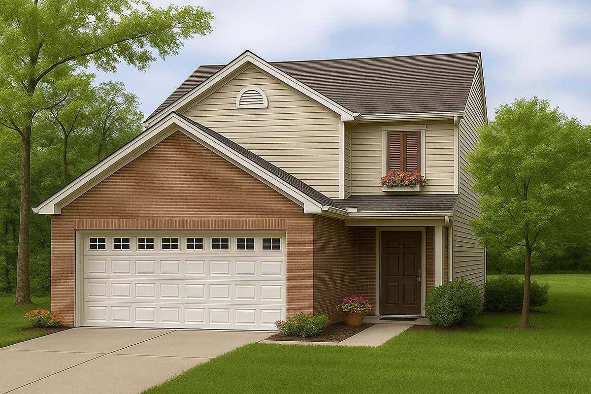 This plan has designed this two-story home with consideration for a growing family. The main level contains all family areas, which flow together to create a wonderful family environment. The Kitchen opens the Dining Room and has a handy island for extra counter space as well as additional seating. The foyer has a convenient half bath near the stairs, that lead up to all three bedrooms including the Master Suite. A space saver laundry area is located in the Master Suite bathroom.