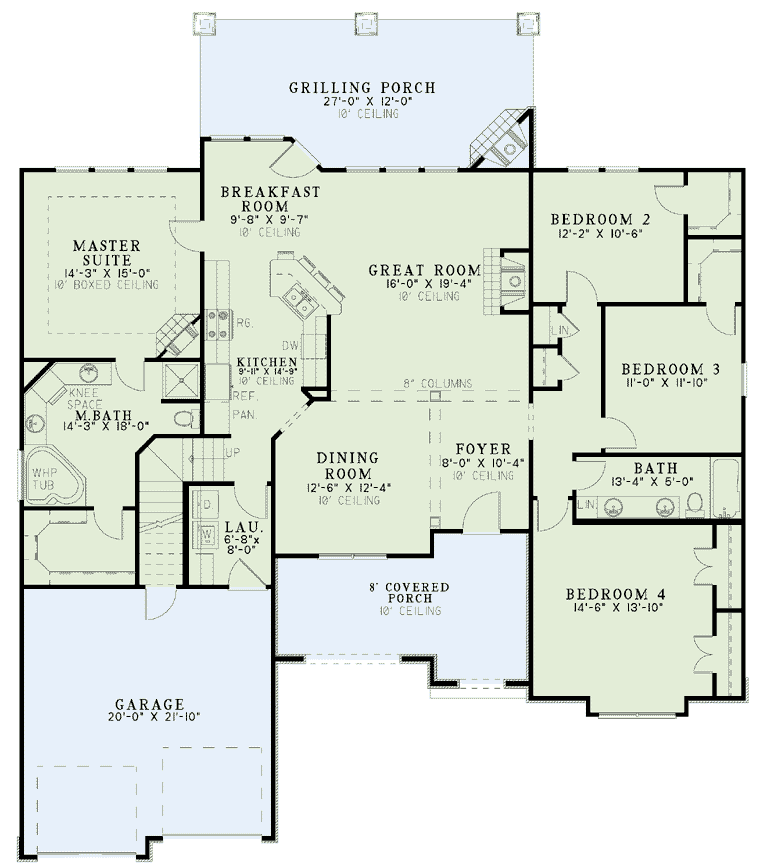 Traditional Style House Plan 62092 with 2094 Sq Ft, 4 Bed, 2 Bath, 2 Car Garage