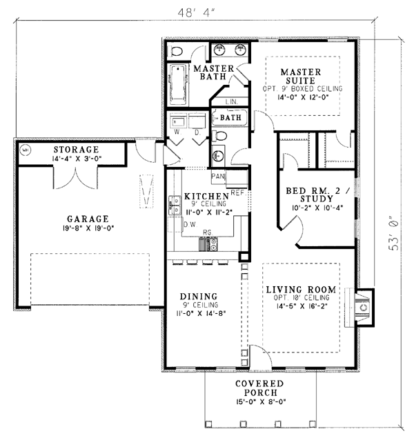 One-Story Style House Plan 62303 with 1169 Sq Ft, 2 Bed, 2 Bath, 2 Car Garage