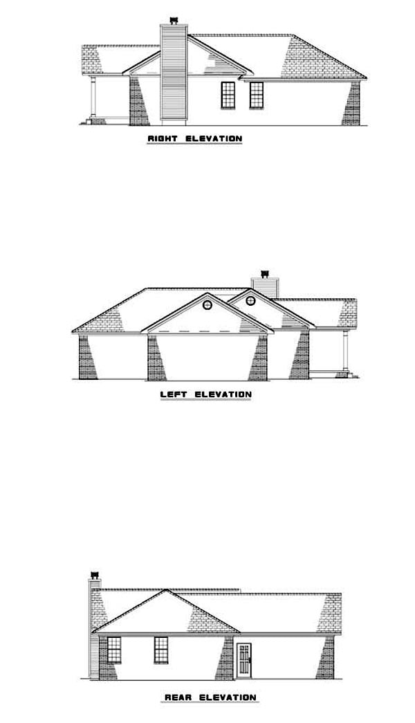 SET OF ELEVATIONS All plans include the exterior elevations (front, rear, right and left) that show and describe the finished materials of the house.