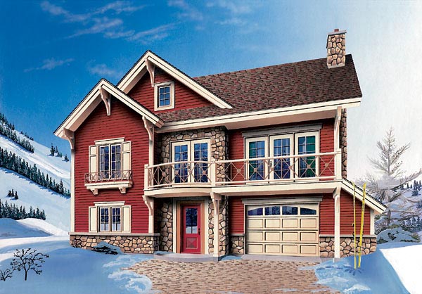 Craftsman, Narrow Lot, Tudor Style House Plan 64824 with 2117 Sq Ft, 3 Bed, 2 Bath, 1 Car Garage