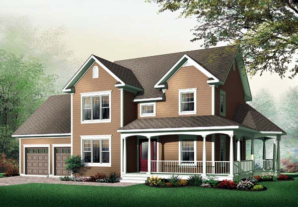 Country, Farmhouse, Traditional Style House Plan 64901 with 1740 Sq Ft, 3 Bed, 2 Bath, 2 Car Garage