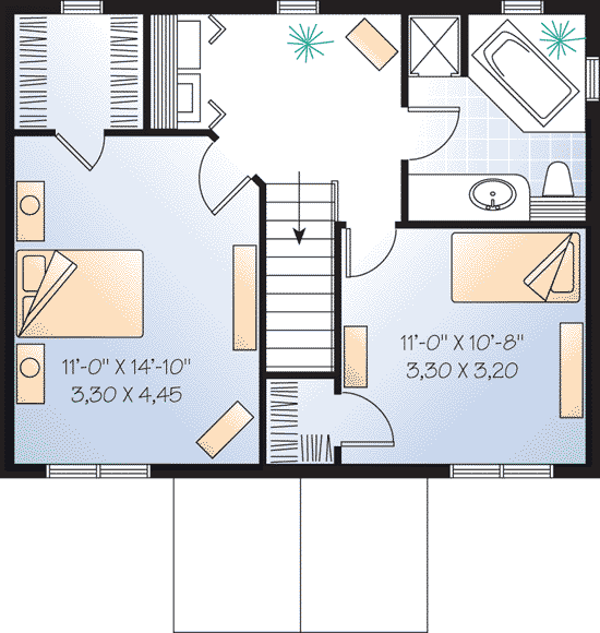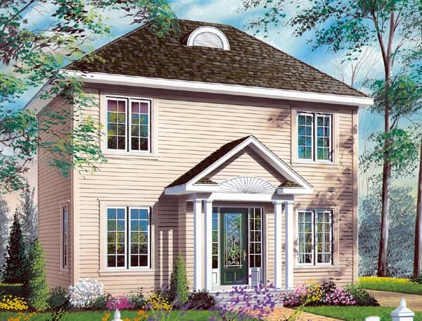 Colonial, Narrow Lot Style House Plan 65327 with 1181 Sq Ft, 2 Bed, 2 Bath