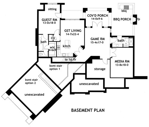 A: The interior renderings are similar to our plan no. 65862. The only difference is the elimination of the Study/Media in lieu of a workshop area in the Garage. I have attached a sketch of a walk-out basement condition.