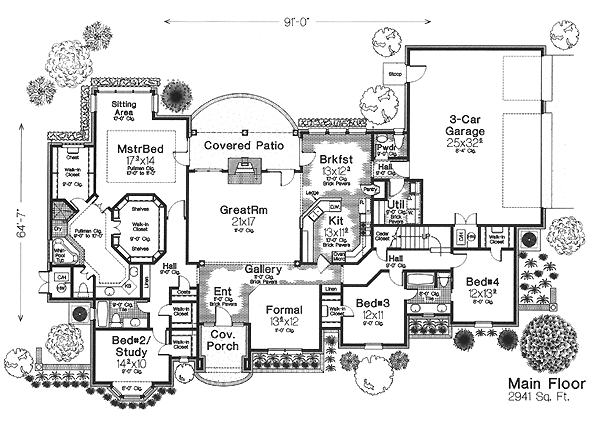 Traditional Style House Plan 66181 with 2941 Sq Ft, 4 Bed, 4 Bath, 3 Car Garage