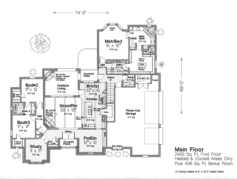 European Style House Plan 66295 with 2422 Sq Ft, 3 Bed, 3 Bath, 3 Car Garage