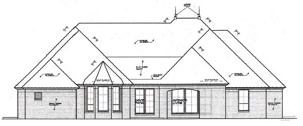 Q:A few questions. The three-car garage shows two different depths: the larger bay is shorter and the single bay is deeper. What are these two measurements and what is the square footage of the garage? Is it feasible to redesign the kitchen island into a peninsula J shape, adding a partial GreatRm wall, and losing the gap between the island and refrigerator? This would require a relocation of the kitchen appliances as the island would probably interfere with the current placement of the stove top. It may even require a beveling of the lower right corner of the Outdoor Living area to provide enough passage way between the peninsula and that corner. What is under the stairwell? Is it accessed from the garage or the kitchen? Seems there would be a door there to indicate access. May I assume that the builder would have an option to change the elevation (like remove the steeples and stucco the outside walls? Tom