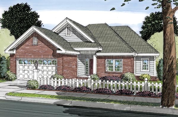 Traditional Style House Plan 66497 with 1121 Sq Ft, 3 Bed, 2 Bath, 2 Car Garage