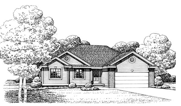 Traditional Style House Plan 66637 with 1466 Sq Ft, 3 Bed, 2 Bath, 2 Car Garage