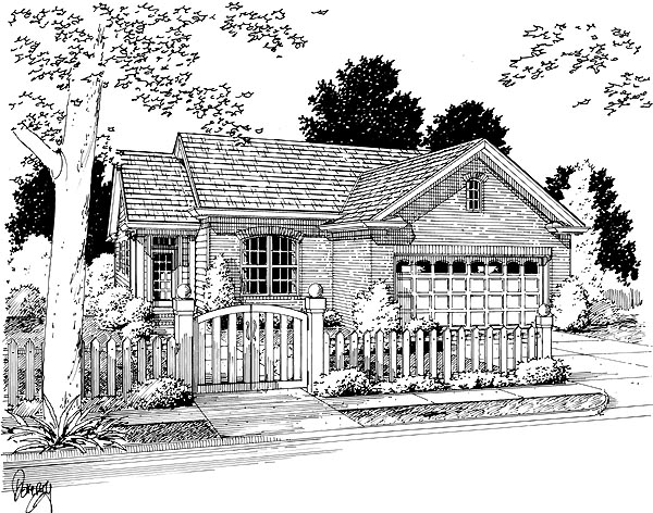 Traditional Style House Plan 68482 with 1318 Sq Ft, 3 Bed, 2 Bath, 2 Car Garage