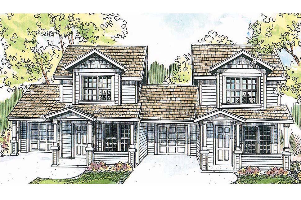 Bungalow, Country Style Multi-Family Plan 69642 with 1852 Sq Ft, 4 Bed, 4 Bath, 2 Car Garage