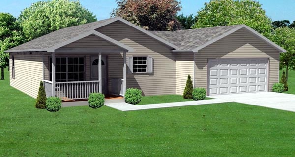 Traditional Style, 936 Sq Ft, 3 Bed, 1 Bath, 2 Car | Plan 70120