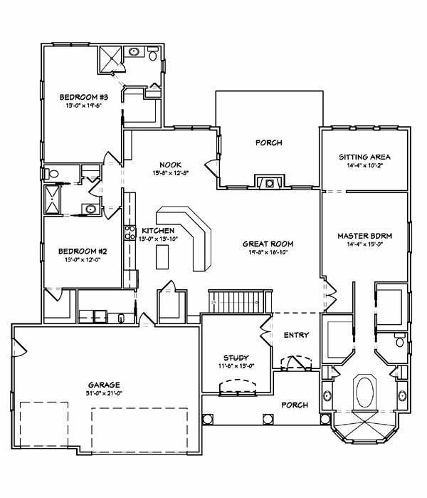 Traditional Style House Plan 70141 with 2672 Sq Ft, 3 Bed, 2 Bath, 3 Car Garage