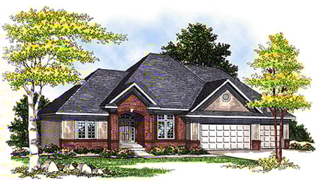 Plan 73345 | European, One-Story House with 3 Bed, 2 Bath, 3 Car