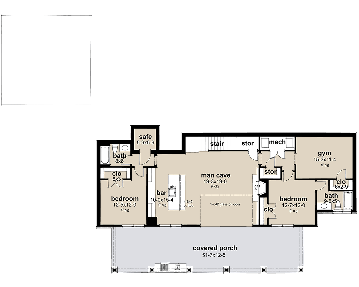 We offer a choice of three types of foundations, full basement, crawlspace, and slab foundations. Each comes fully dimensioned, and noted indicating wall composition and thickness, construction detail references to our detail page, beam, pier and column locations and sizes, stair locations for basements, reinforcing steel sizes and step downs in monolithic slabs and ventilation grilles for crawlspaces.