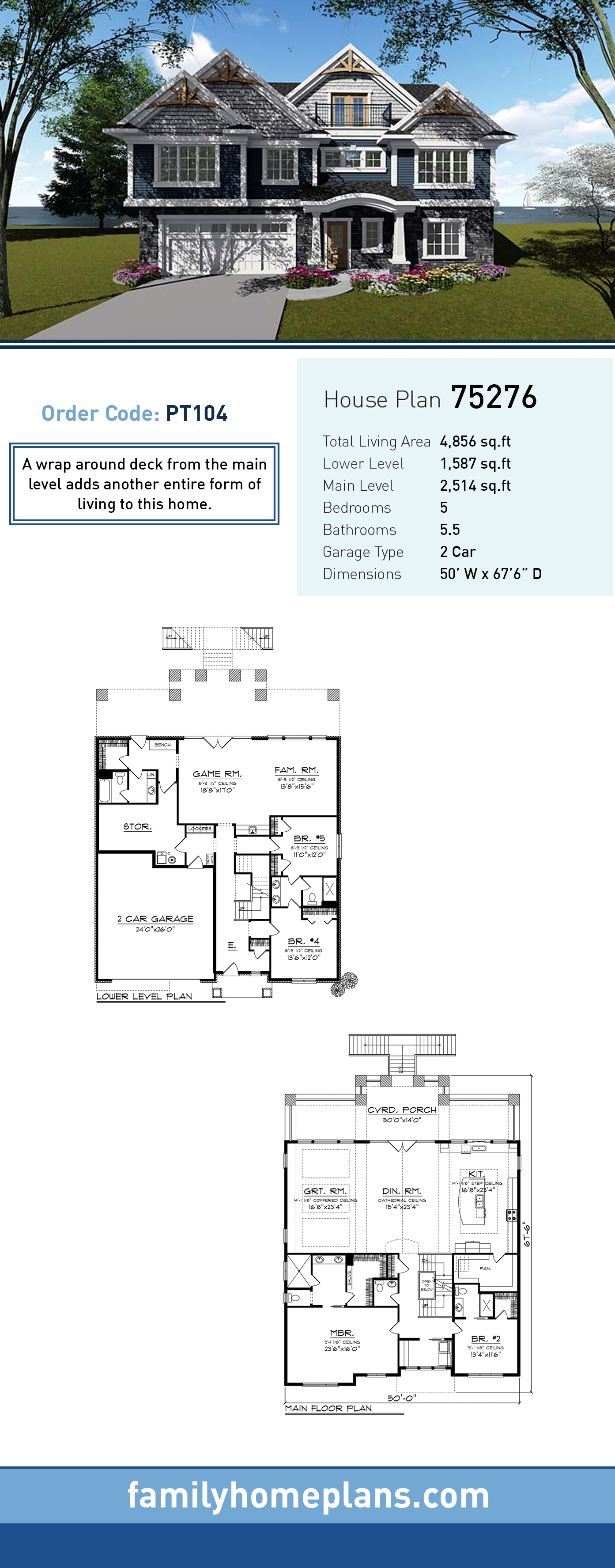 Cottage, Country, Craftsman, Southern Style House Plan 75276 with 4856 Sq Ft, 5 Bed, 6 Bath, 2 Car Garage