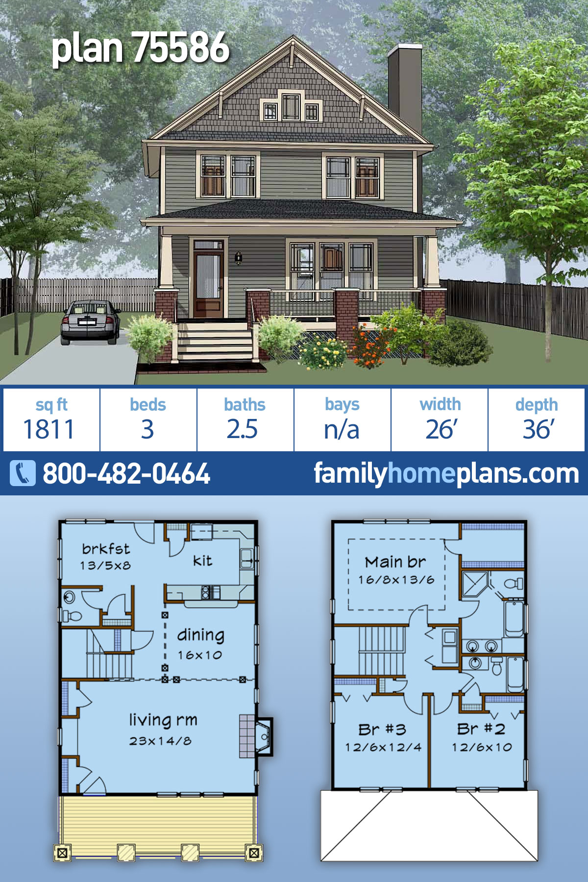 2 Floor Neighborhood House Plan #75586 has 1811 sq ft, 3 beds and 2.5 Baths and Master Bed Upstairs