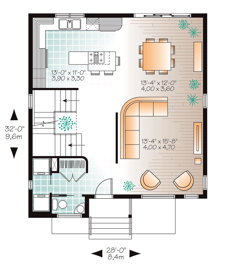 28' from Front Door Floor Level