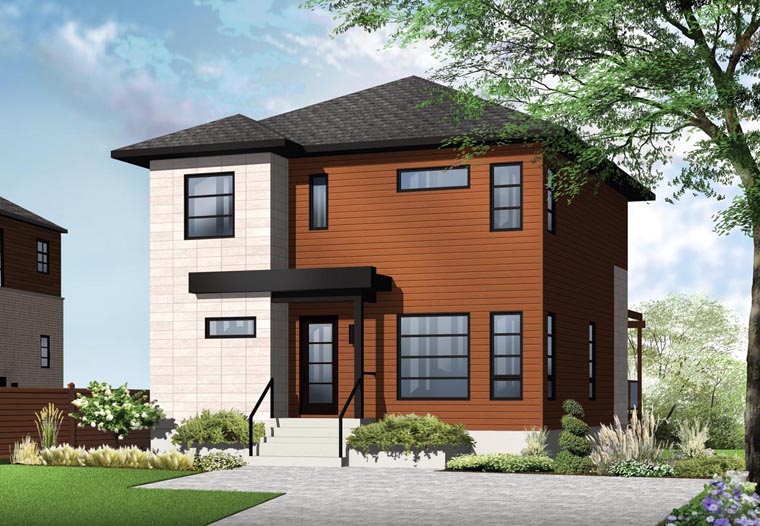 This home has been designed with an eye on efficient fabrication of walls offsite to allow for faster site assembly. This contemporary style home presents clean and pleasing lines finished in wood and architectural block. The interior is consistent with the modern style and boasts an open concept with ample light. With flexible dining space, it is easy to accommodate 8 guests or more. The center island provides further space for socialization and prep and plenty of storage. A laundry area independent of the bathroom means convenient access for daily living and chores. A well-lit staircase leads to the upstairs bedroom level including a family bathroom with freestanding bath and separate shower. The master bedroom is appointed with the indispensable walk-in closet, and two secondary bedrooms complete the level.