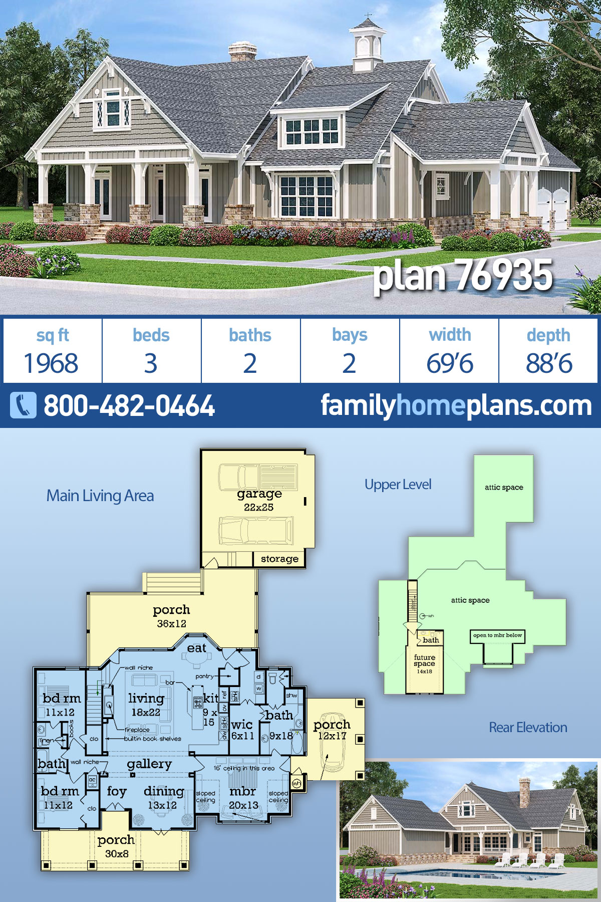 Beautifully arranged, this 3 bed room craftsman style home is super energy efficient featuring 2x6 exterior walls and a host of other energy saving features. The interior contains an array of features on the most wanted list by homeowners including the very open design of the main living areas. The living room is open and bright and features a built-in library, wood burning fireplace and a sweeping stairwell entrance to the upstairs bonus room. The bonus room has been pre-planned with an adjoining bath making it the perfect space for a game room or home theatre. The kitchen is large, fully appointed and has an adjoining butler’s pantry. The utility room is but a step away but privately located and can also be accessed from the master bath for added convenience. The master bedroom is generously sized and features 16’ partial ceilings that allow light from the dormer windows to illuminate the room. Best of all, there is a private porch for the owners or it can be used as a porte-cochere for making those quick stops without the need to garage the car. The exceptionally large rear porch provides lots of room for outdoor entertaining and there is a breezeway to the two-car garage. This plan is also suitable for handicap accessibility with many features built into the design, such as extra wide hallways and 3’ passage doors. If building to handicap accessible standards, the optional slab foundation is recommended.