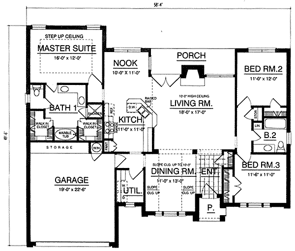 European, One-Story Style House Plan 77045 with 1791 Sq Ft, 3 Bed, 2 Bath, 2 Car Garage